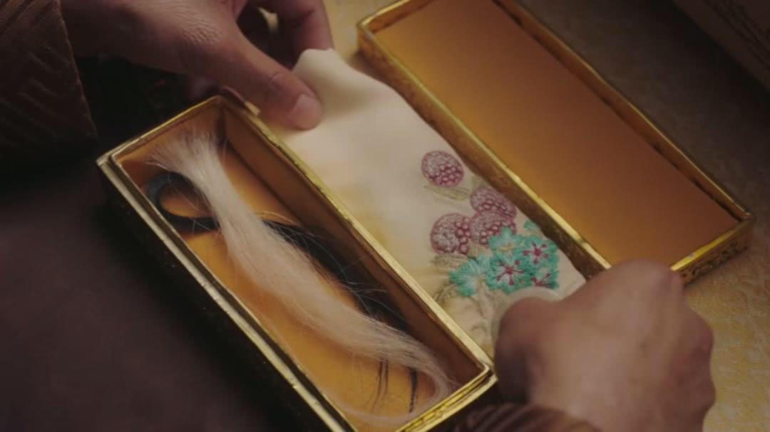他也像如懿一樣,剪了一撮白髮放在如懿斷髮邊上,捧着盒子安詳離世。