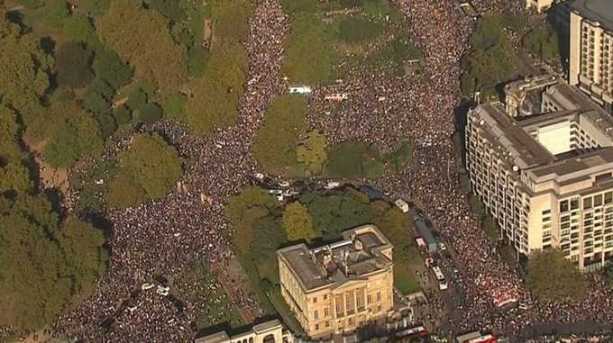 本次示威遊行規模之大,遠遠超出英國政府的預期。示威遊行隊伍於中午12時在倫敦市區主要街道聚集,下午2時彙集到倫敦市中心議會廣場,擠滿了英國議會大廈前的廣場和附近的幾條大街。