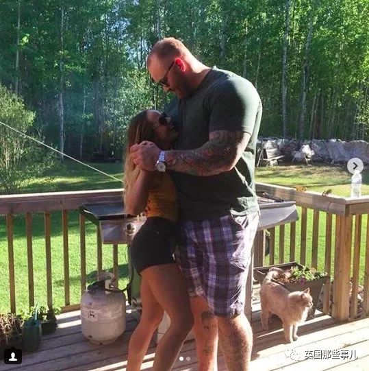 兩人是2017年在一家加拿大的酒吧認識的,當時Kelsey在那當服務員,看到人高馬大的“魔山”出現,她就去求合影。合着合着,兩人就合出了愛情的火花。