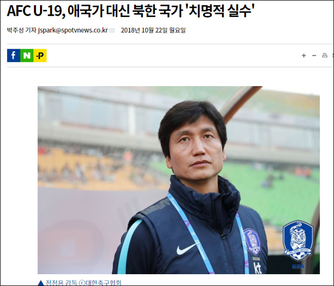 10月22日的亞青賽,在C組第二輪的一場比賽中,韓國對陣約旦。在賽前奏國歌儀式中,主辦方印尼組委會奏完約旦國歌后,竟然播放了“朝鮮國歌”。