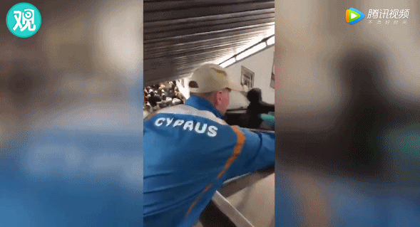 視頻中,有一名當時位於扶梯上方的男子,扒住扶手想要爬出去,在旁邊路人的幫助下被拉出事故扶梯,躲過一劫。