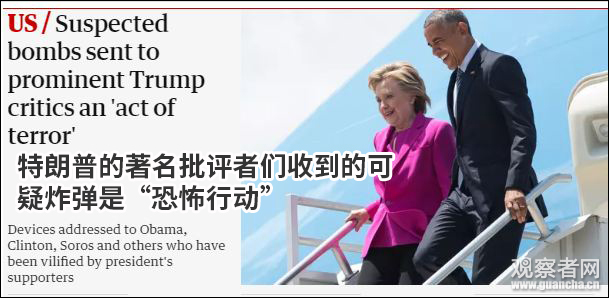 這周,美國多名重要政治人物都收到了可疑包裹。CNN稱,收到這些包裹的人都是右翼勢力的批評者,甚至是美國總統特朗普的批評者。