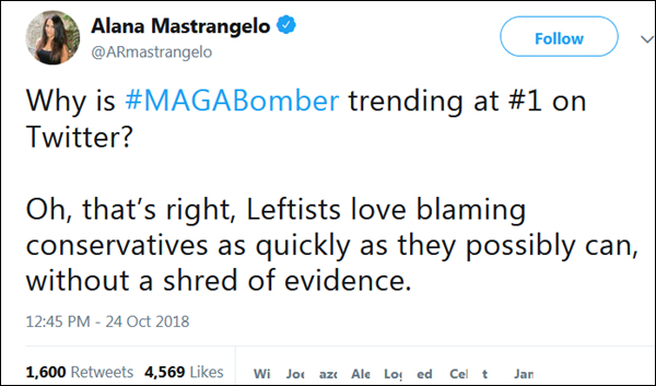 “左派喜歡在沒有絲毫證據的情況下,儘可能地譴責保守派。”