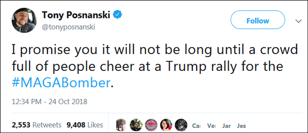 連環炸彈郵件威脅下,“讓美國再次偉大炸彈人”上推特熱搜榜榜首