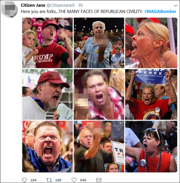 “特朗普,你和你仇恨性的言論要為MAGA Bomber負責。”