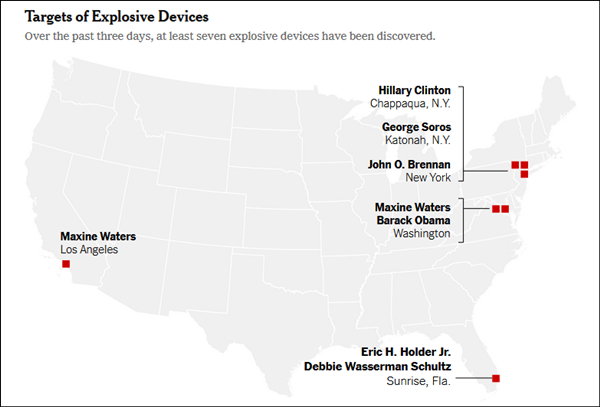 觀察者網此前報道,從22日(週一)開始,寄給金融界巨頭、自由主義慈善家喬治·索羅斯、美國前國務卿希拉里、民主黨議員舒爾茨(Debbie Wasserman Schultz)、美國前總統奧巴馬等人的可疑包裹先後被發現並截獲。
