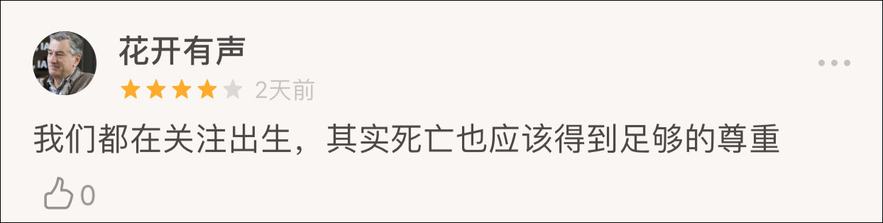 網友看完《生命裏》後也給出了不低的8.7分,有網友表示,死亡同樣應該得到尊重,我們是時候認真對待這個話題了。