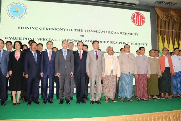 該協議當天在中國駐緬甸大使洪亮和緬甸商務部部長丹敏見證下,由中信集團董事長常振明代表中信聯合體與緬甸皎漂特別經濟區管理委員會主席吳塞昂簽署。