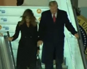 9日晚間,特朗普乘機抵達法國