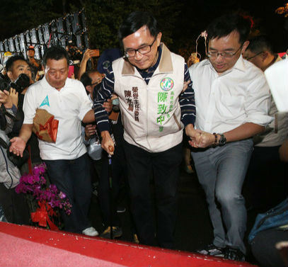 眼下“九合一選舉”如火如荼地進行着,陳水扁自然不會放棄給兒子陳致中助選的機會。在10月28日就出席陳致中參選高雄市議員競選總部成立大會。在活動中,陳水扁以“上階不上台”的方式來“規避”“不上台”的限制,為兒子披上彩帶,並用錄像致詞的方式來“規避”“不能參與選舉活動”的限制,為兒子打氣。