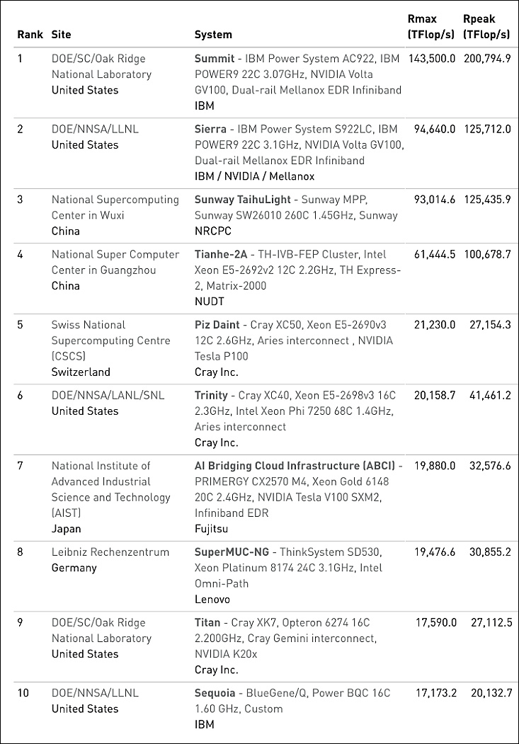 全球超算500強新榜發佈:美國衞冕 中國力爭