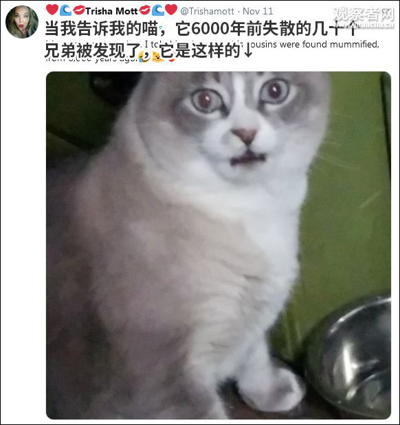 隨着如今的愛貓人士越來越多,這則“木乃貓”的消息也在國外社交網站上引起了人們的關注,評論幾乎被真·喵星人佔領。