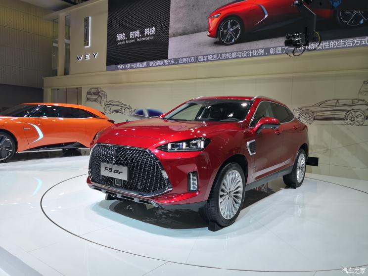 在2018廣州車展上,WEY品牌首次發佈了WEY P8 GT車型,新車整體在WEY P8設計基礎上進行了一定修改,使車輛整體結合了GT車型以及SUV車型的造型特點,動力部分其採用了插電混動系統。