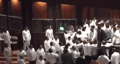 首先衝向演講台試圖攻擊議長的是拉賈帕克薩的支持者,隨後維克勒馬辛哈的支持者上前阻止,雙方“戰鬥”正式爆發。