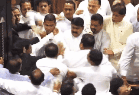 據英國《衞報》報道,15日上午,斯里蘭卡議會由“混亂”升級到“混戰”,長達數月的內鬥爆發成“羣毆”,“戰況”慘烈。有議員被打進醫院,有議員被控持刀,多人在毆打中受傷。