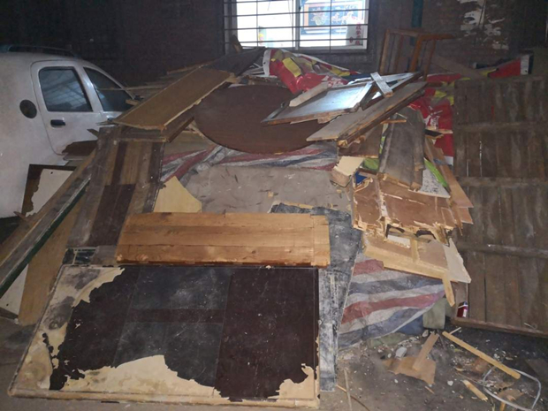 羣眾收集的廢舊木傢俱、地板等劈柴