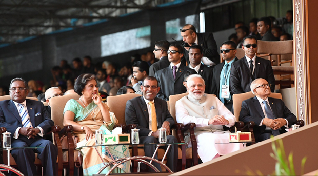 薩利赫的盟友、流亡斯里蘭卡的前總統納希德,以及另一位前總統加堯姆,也出席了就職典禮,他們與莫迪坐在一起,談笑風生。