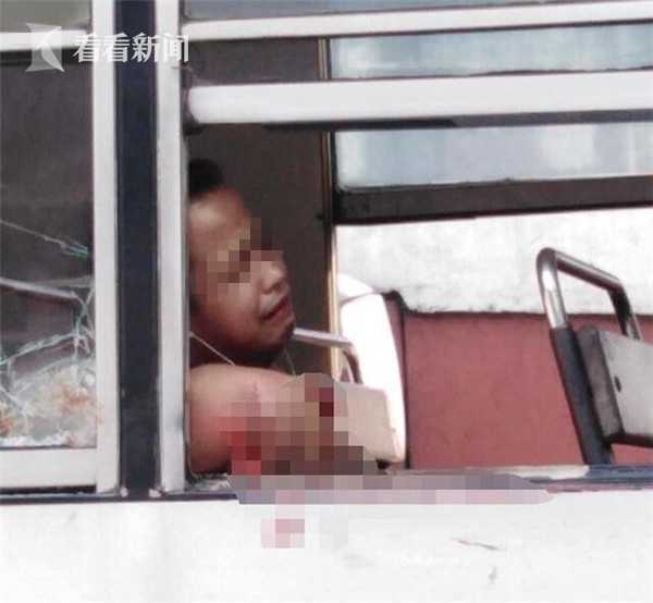 男子坐公交手臂放窗外 下一秒就被對面來車撞斷
