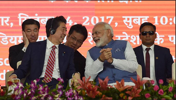 2017年9月14日,日本首相安倍晉三與印度總理莫迪出席高鐵項目奠基儀式 圖自 法國國際廣播電台