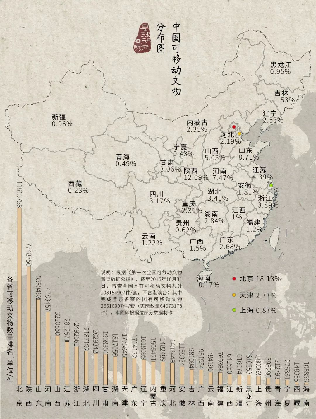 (中國可移動文物分佈,製圖@張靖/星球研究所)