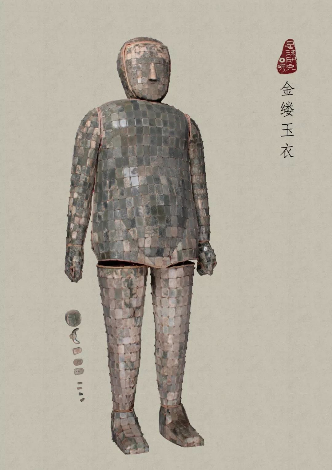 (西漢劉勝金縷玉衣,全長188釐米,用玉2498片,出土於河北滿城,是我國考古發掘中出土年代最早最完整的玉衣,現藏於河北博物院)