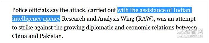 據巴基斯坦《黎明報》24日消息,**巴基斯坦警方的調查工作稱,**襲擊事件是在印度情報機構調查分析局(RAW)的協助下展開的。