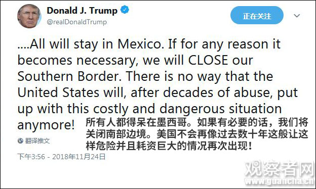 美國總統特朗普24日傍晚曾再次在社交媒體上威脅關閉南部邊境。