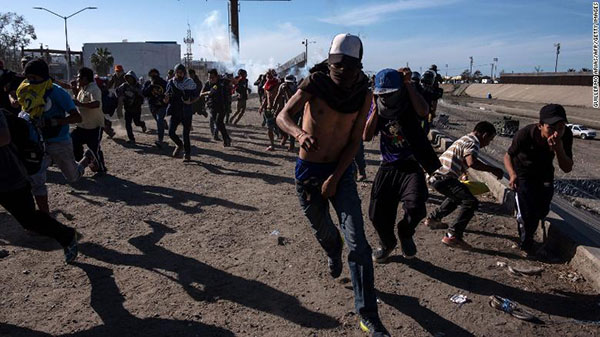 據美國有線電視新聞網(CNN)11月26日報道,當地時間25日,約500名中美洲“非法移民”試圖穿越路障強行進入美國邊境城市聖地亞哥,從而引發難民與駐哨警察的激烈衝突。