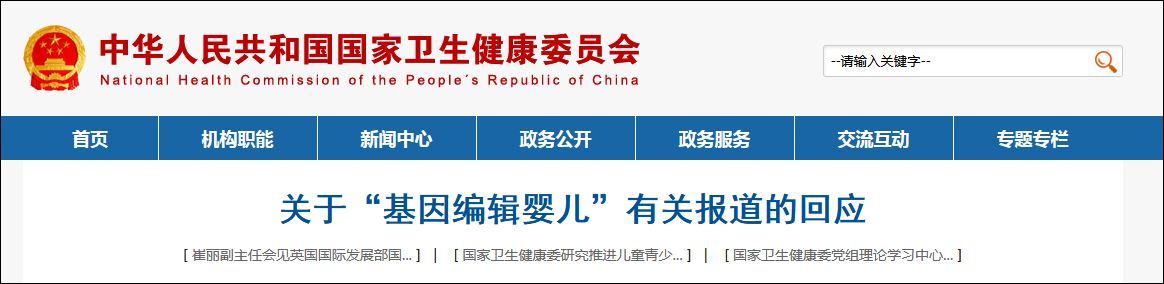 國家衞健委關於“基因編輯嬰兒”有關報道的回應