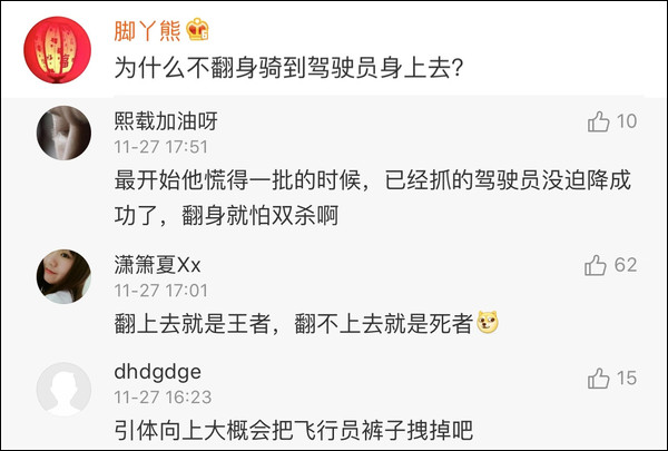“雖然他在飛前安檢犯了一項致命錯誤,但事情發生後盡全力快速降落,還死命抓住我,不管怎麼説最後還是把我安全帶回地面了。”