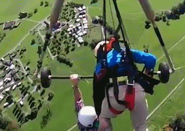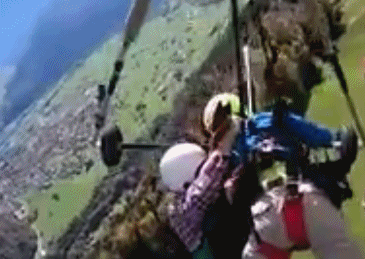 為了保命,他只能全程徒手緊抓着教練褲腿和滑翔翼控制桿,懸掛千米高空2分多鐘。
