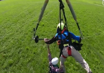 教練為了能儘快地安全控制滑翔翼降落,只能放開抓住Gursk3的左手,讓他抓住自己的左腿,另一手抓杆,雙手操控滑翔翼。