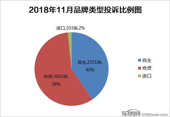 11月,合資品牌的投訴量上漲明顯,受東風日產奇駿和北京現代途勝等合資車型投訴量異動的影響,投訴量較10月份增加232宗,佔比提高3個百分點。本月自主品牌投訴量有所回落,佔比減少2個百分點。