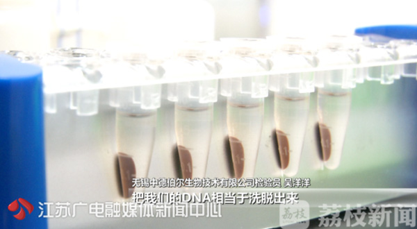 經過清洗樣本、取樣、添加試劑、加入納米磁珠,5份樣本的DNA被分離出來。檢驗員加入檢測羊肉DNA的試劑,再將它們放入專業儀器中讀取。無錫中德伯爾生物技術有限公司檢驗員吳洋洋介紹:“如果我們所買的樣本里面確實是真實的羊肉,機器會得到一條S型的擴增曲線。如果所測的樣本不含羊肉的話,就會得到一條水平的曲線。假如不含羊肉,我們會通過其他試劑盒,比如説雞肉、鴨肉、豬肉,再對它進行一個排查檢測。”