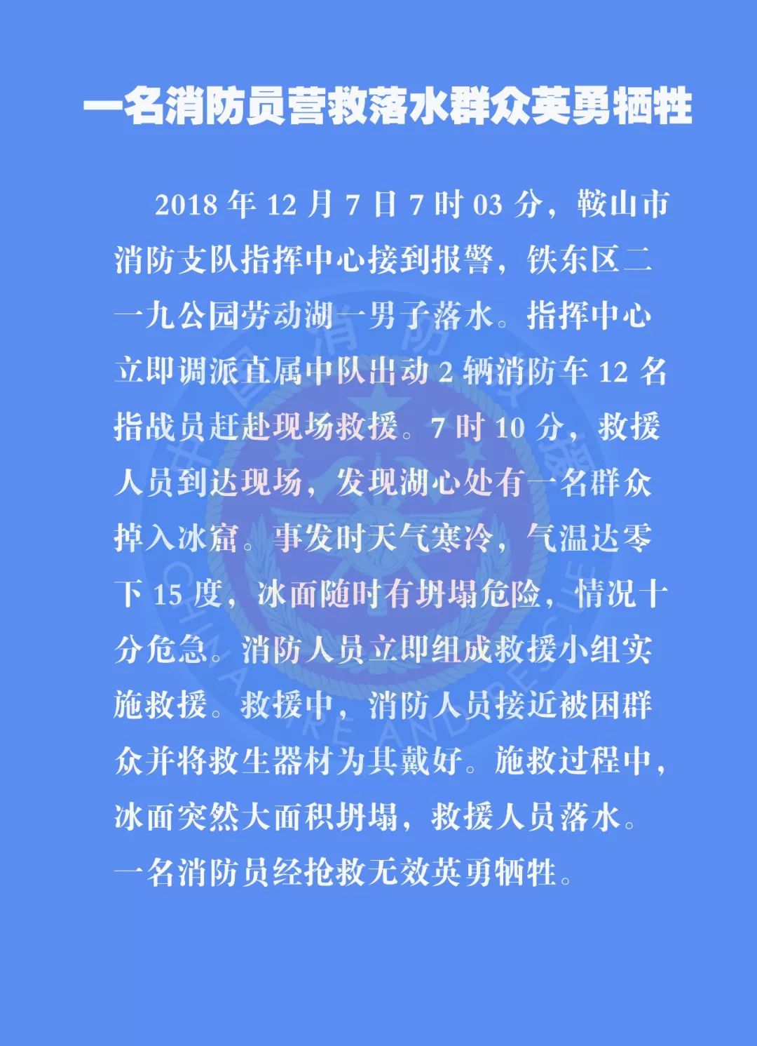 中午,@鞍山消防伴你行 發佈警情通報,一名消防員營救落水羣眾英勇犧牲。