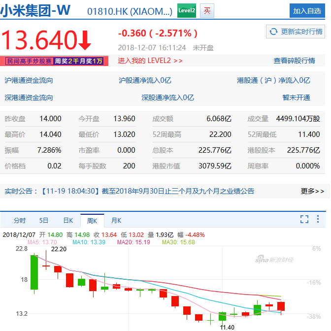 目前,小米上市以來累跌近20%,美團點評跌近22%。