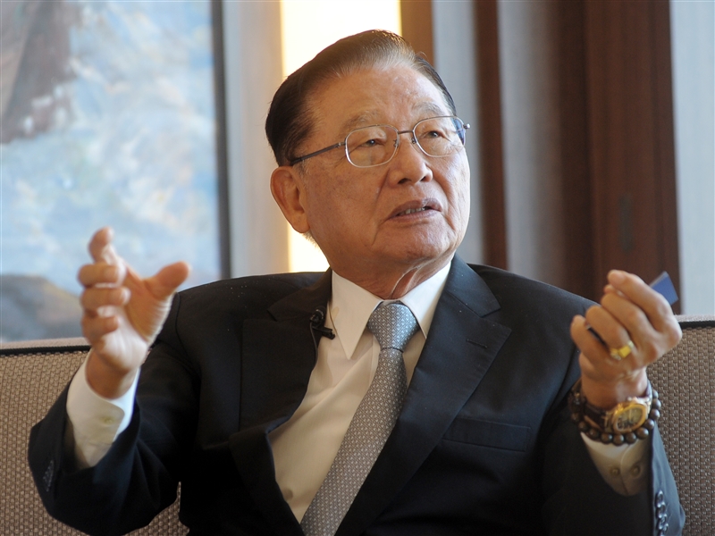 資料圖:江丙坤在成都接受採訪。圖片來自中新網