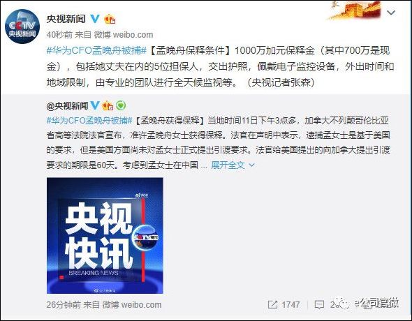 據@央視新聞 12月12日消息,北京時間12月12日,加拿大法院作出裁決,批准華為公司首席財務官孟晚舟的保釋申請。