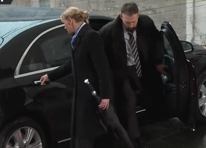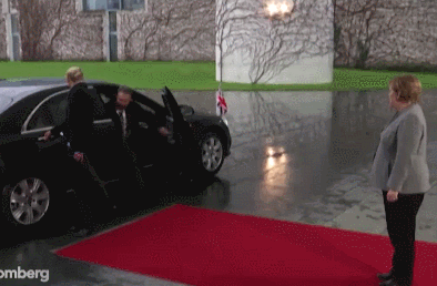 打不開車門的那一幕,就發生在梅與默克爾見面握手之前。