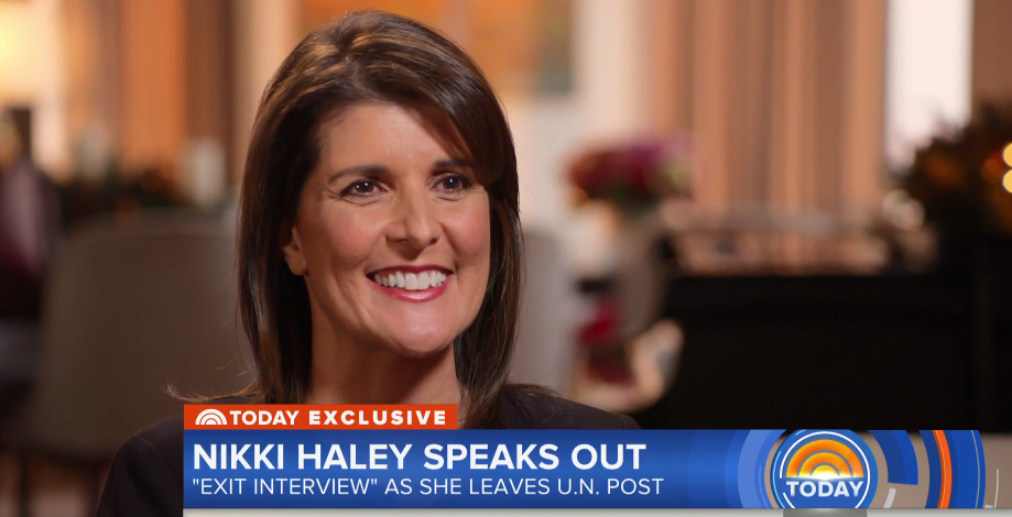 據美國全國廣播公司(NBC)12日報道,年底即將卸任的美國常駐聯合國代表黑莉接受NBC“今日”節目的採訪。在採訪中,黑莉談到了自己在聯合國工作時,能夠化總統“不可預測”的天性為“無可取代”的優勢,用來威脅他國,幫助自己完成任務。