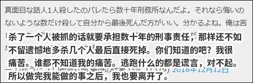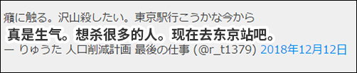 12日當天,除了發佈的殺人預告的推文以外,此用户還發布了“想看見血”、“想殺很多人”等推文。