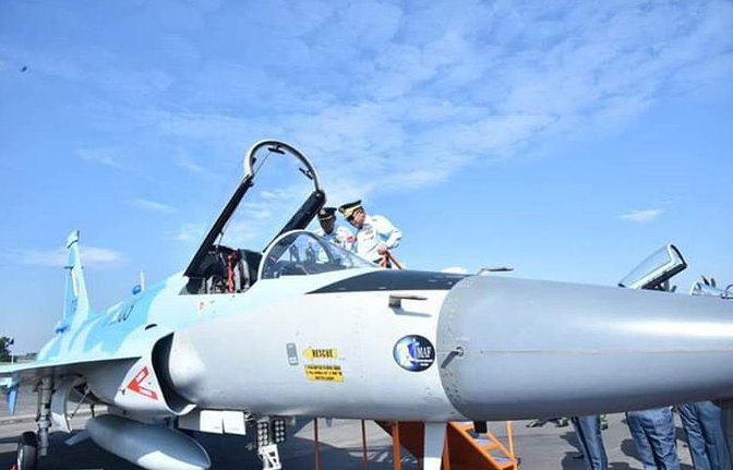 緬甸空軍司令進入“梟龍”座艙 圖源:社交媒體