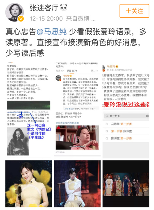 張愛玲書迷@張迷客廳 建議馬思純少看假張愛玲語錄,多讀原著……