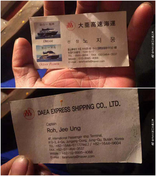 “這艘遊艇寬約10米,長30-40米,三層結構,底層是機艙。我們上艇後去駕駛室看過,裏面設備非常豪華,有1300馬力的四台三菱機組,艇上我們反覆尋常沒有發現人。”船老大告訴記者,他在船上找到一張名片,根據名片信息看,這是一艘韓國遊艇,是從韓國釜山開往日本福岡的。因為這船是雙體船,海上拖行比較困難,漁船拖上後只能每小時開3-4海里,拖着它漁船也無法捕撈作業了,大約需要開4-5天時間,才能到沈家門漁港,到岸後船老大打算報個警,讓邊防海警先把遊艇保護起來。