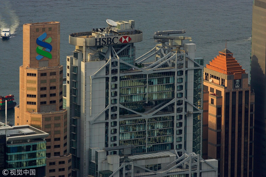 香港中環金融中心,渣打銀行、滙豐銀行等。圖源:視覺中國