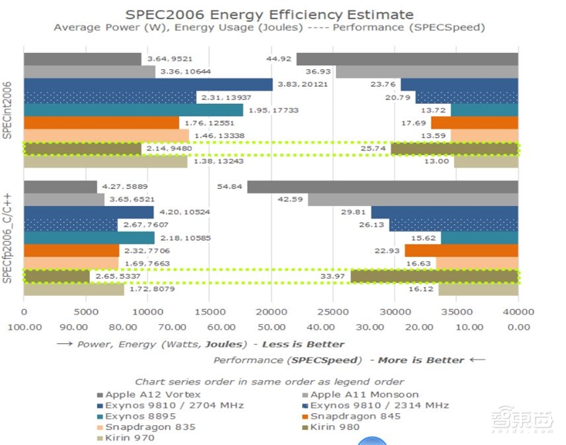 ▲SPEC2006 測試下芯片 CPU 性能效率對比