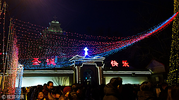 2016年12月24日,北京宣武門教堂聖誕氛圍濃厚 @視覺中國