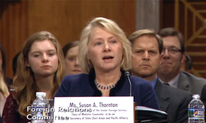 據香港中評社2月16日報道,美國國務院負責東亞事務的代理助理國務卿董雲裳15日出席美國國會參議院外交關係委員會的提名聽證會時,被參議員盧比奧“逼問”美國國務院網站撤掉台灣旗幟是怎麼回事?以往美國國務院東亞局回覆台媒詢問時均以“我們的一中政策沒有改變”來簡單回應,而當天董雲裳對此比較詳細地予以解釋。這也是美國官方首次比較明確的解釋。
