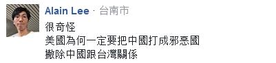 對此所謂“分析”,台灣網友都看不下去了。有人對這種“被害妄想症”表示不能理解,稱“很奇怪,美國為何一定要撇除中國大陸和台灣的關係,中國也沒任何理由去惹美國啊。”