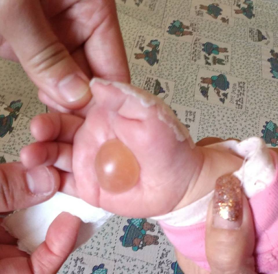 “大人一點點燙傷就受不了了,更何況是10個多月的寶寶!”媽媽難過得説,看到女兒手掌上這麼大的水泡,真的心疼又生氣,批評醫院“怎麼會出這種狀況”。照片中可見,小小手掌約四分之一都被水泡佔據。